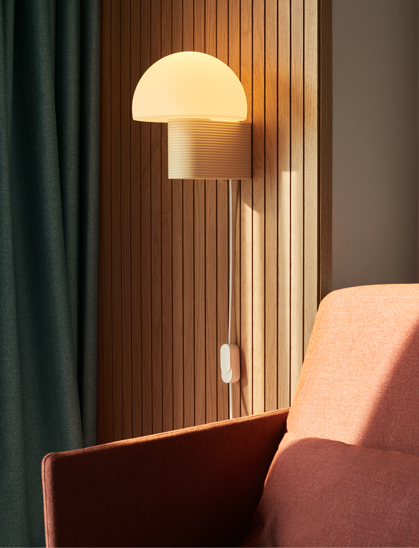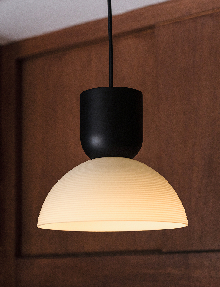 Lighting collection sparked by the Art Deco influence within Basque architecture. Word for “streamlined”, these mushroom-like lights feature smooth, clean geometries and a nod to vintage illumination.