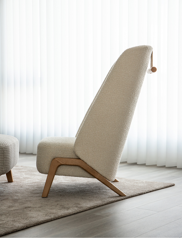 This is a cocoon-shaped piece, with a high backrest and simple, timeless design lines, promising comfort, luxury, and privacy. Liv is the anchor piece in the decoration of public spaces.