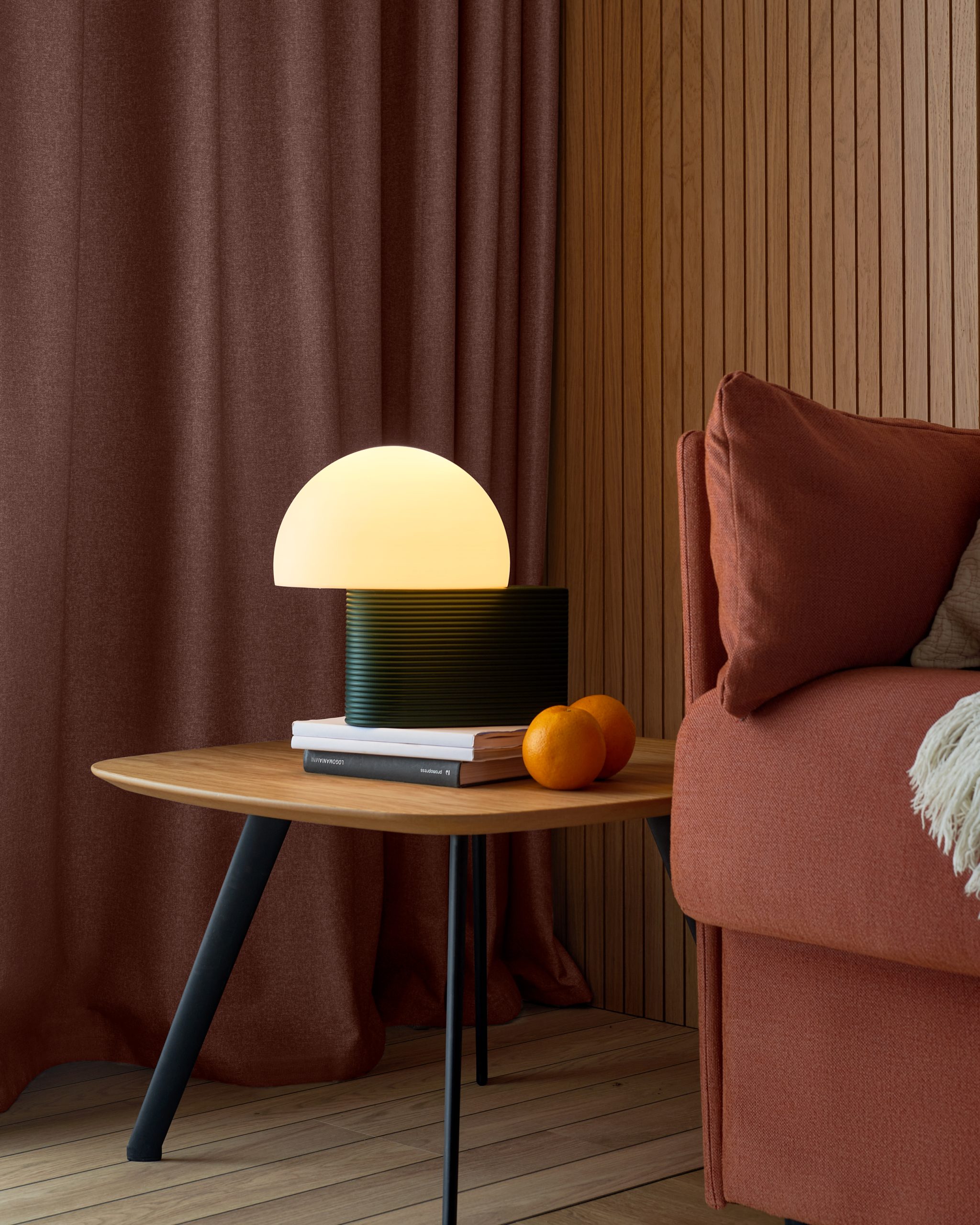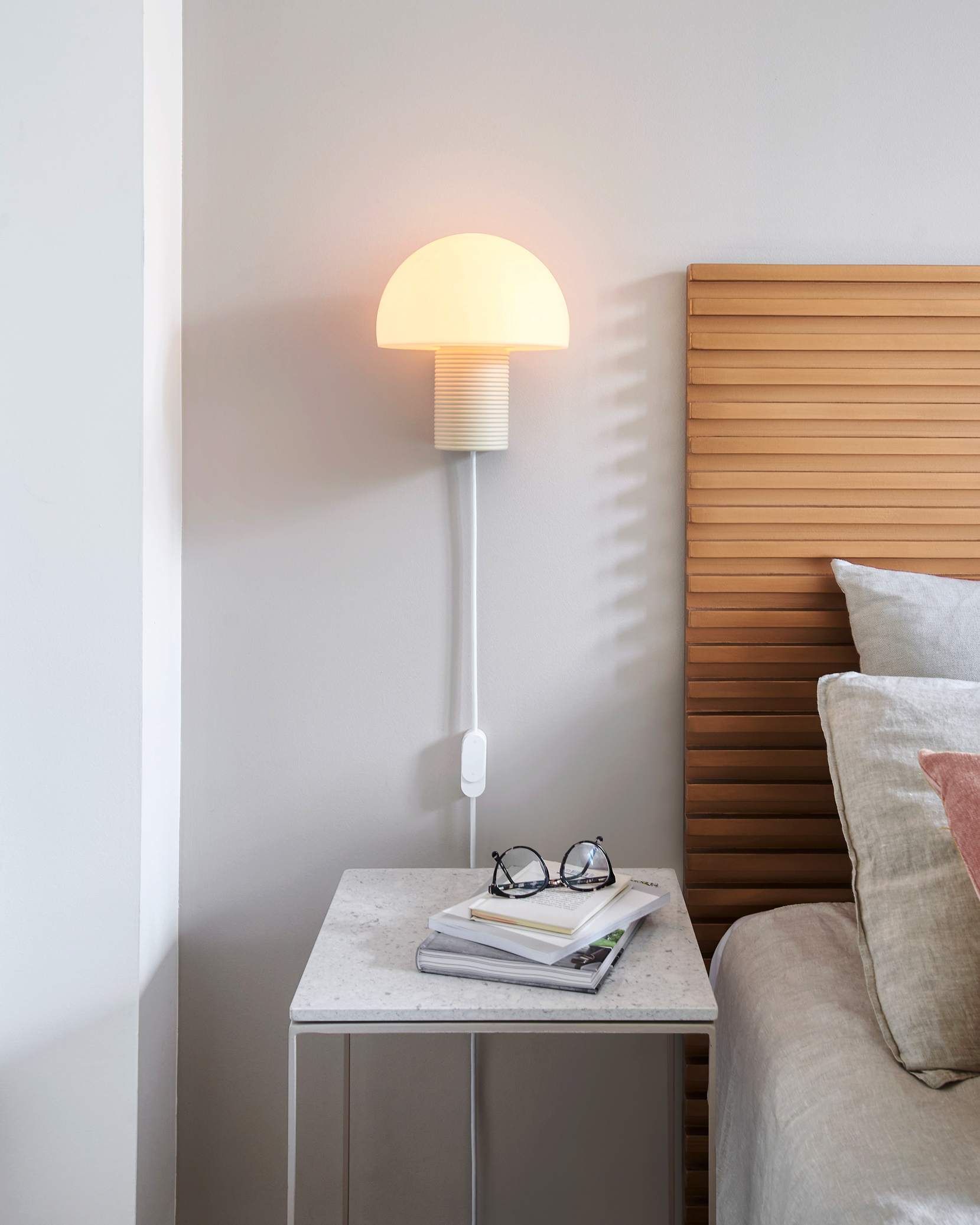 Arintzea’s mushroom diffuser offers unobstructed shine, while the simple base flaunts lines that adorn its surface in Art Deco style. With its slim, off-center stand, the Arintzea table lamp can easily slide between books on your favorite shelf for a subtle decorating moment. Install the Arintzea wall lamp with the Gantri single screw bracket for a stylish bedside setting. Arintzea fits into any home design, bringing the ideal amount of family warmth to any space.