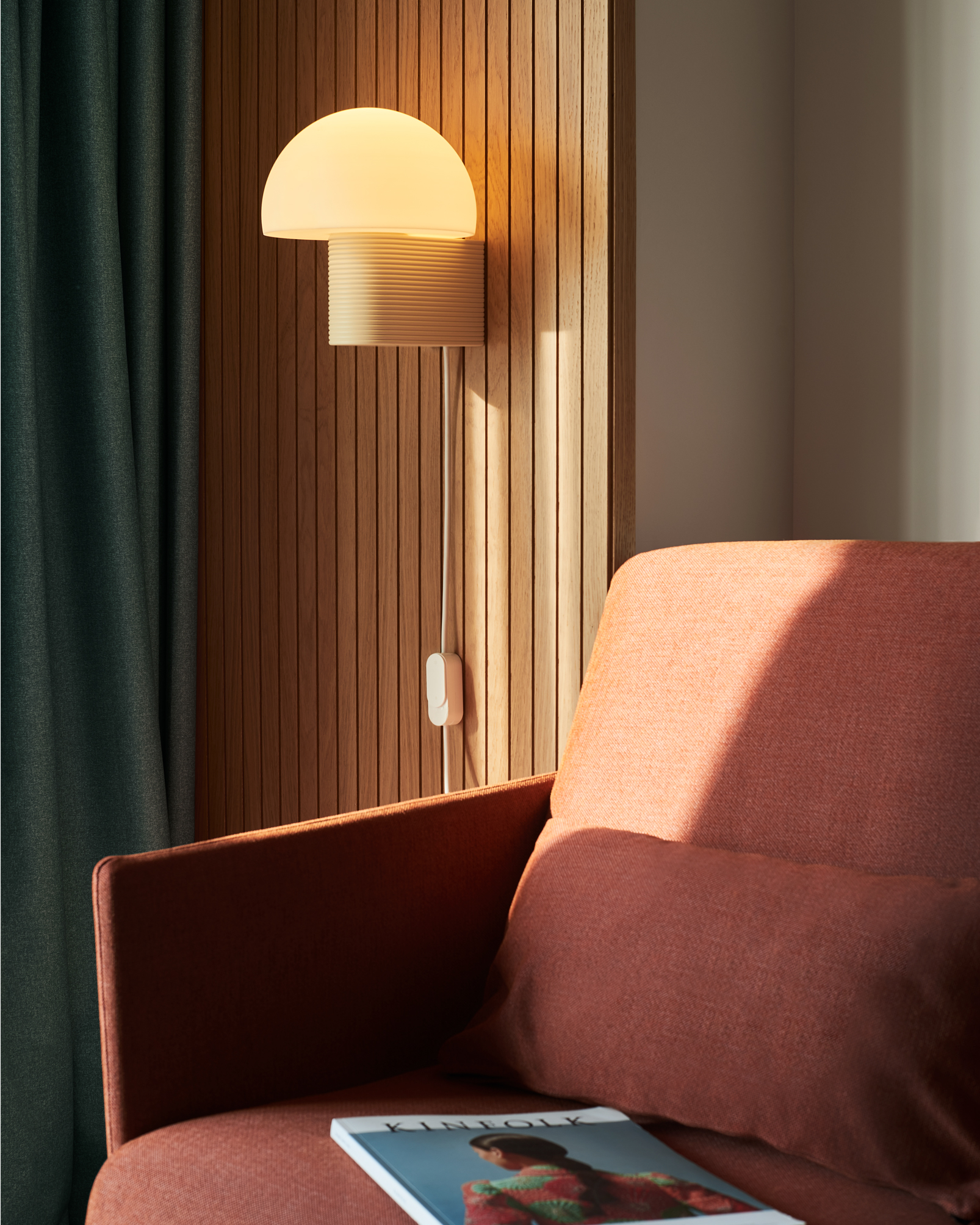 Lighting collection sparked by the Art Deco influence within Basque architecture. Word for “streamlined”, these mushroom-like lights feature smooth, clean geometries and a nod to vintage illumination.