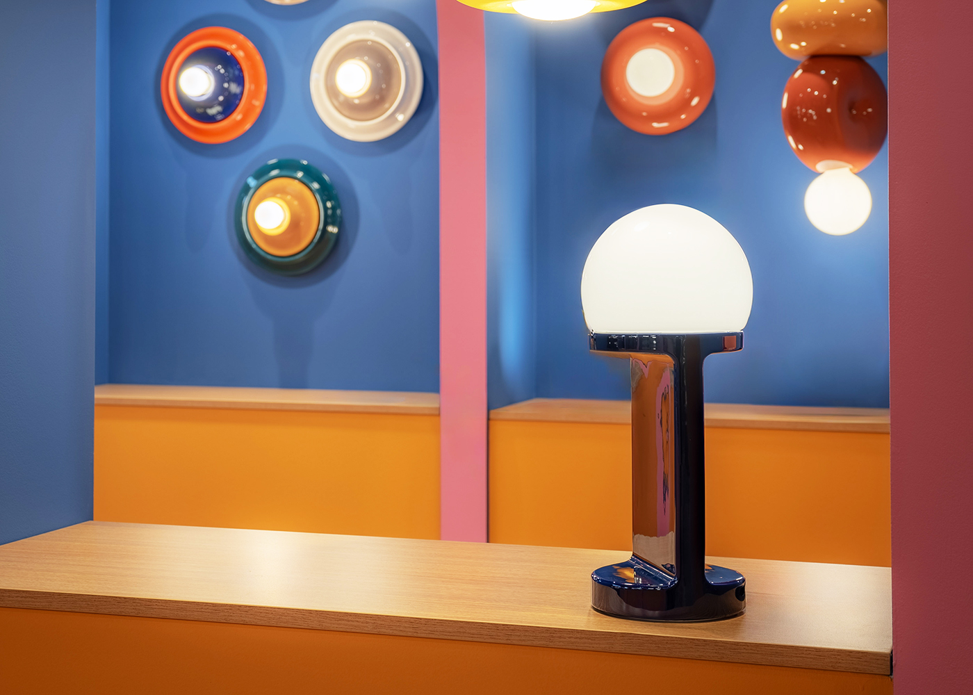 An ironic reinterpretation of Wagenfeld’s classic Bauhaus, but also a hint to Enzo Mari’s famous fruit bowls, Habea makes the beam its central element. This table lamp, made of ceramic and blown glass, provides excellent visual comfort.