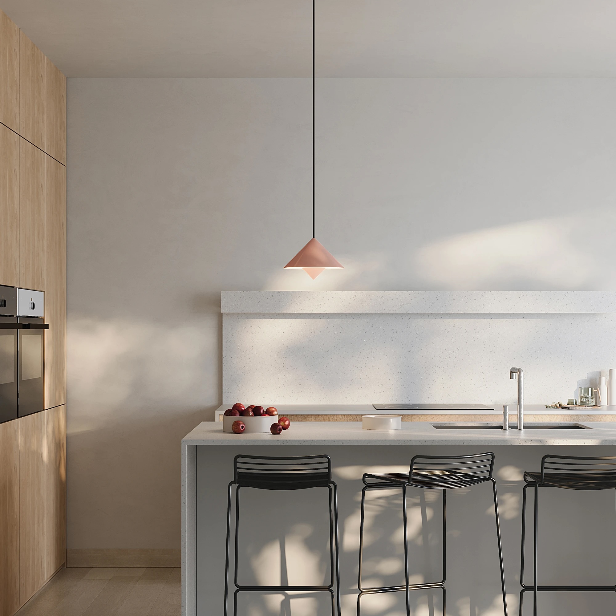Mirroring traditional Basque hats worn during carnivals, Jai Pendant Light captures the playful spirit of its name—’Jai,’ meaning ‘party’ in Basque. Muka Design Lab distills this lively essence into a compact, geometric pendant, its striking pyramidal shape embodying the elegance of minimalist design.